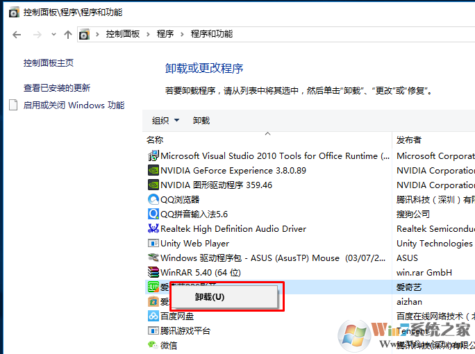 或者是進(jìn)入控制面板中的卸載程序,右鍵自己要卸載的程序,選擇卸載。