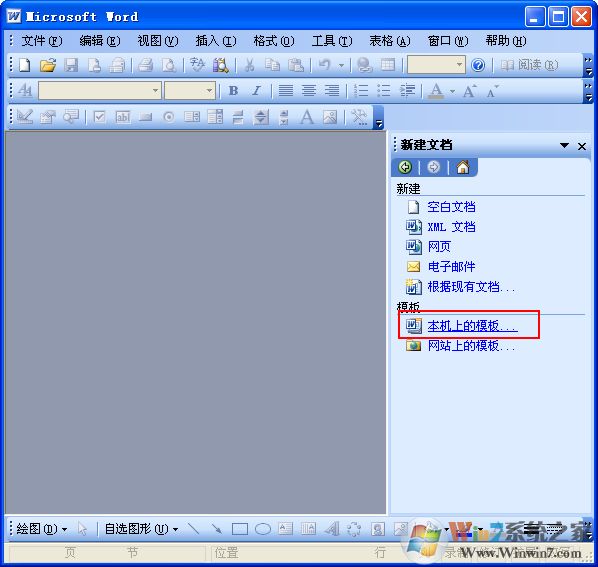 3:選擇右邊任務(wù)窗格中的“本機(jī)上的模板..”如下圖所示: