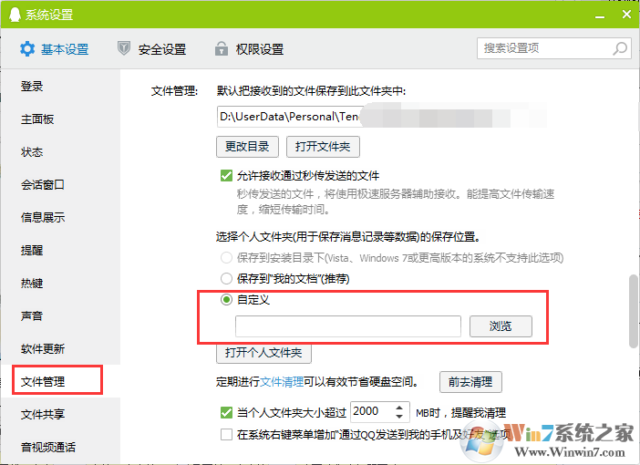 如,小編win7系統(tǒng)我的文檔位置在D:\UserData\Personal 那么QQ文件會在: