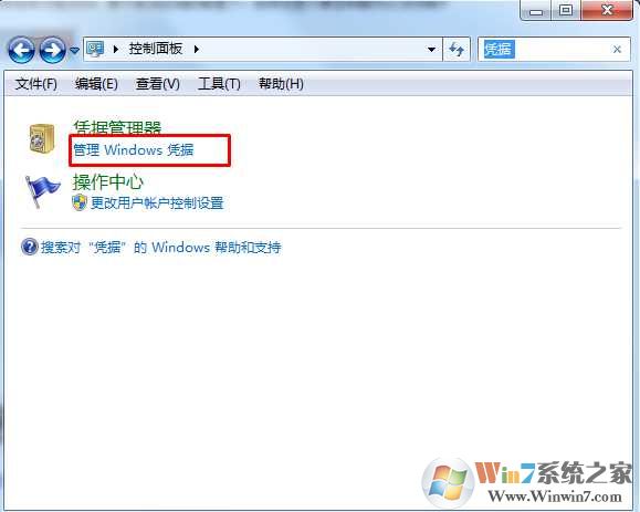 2、打開控制面板,然后搜索“憑據(jù)”,打開管理Windows憑據(jù);