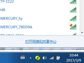 1、首先我們點(diǎn)擊任務(wù)欄右下角無(wú)線鏈接圖標(biāo),點(diǎn)擊“打開(kāi)網(wǎng)絡(luò)的共享中心”,如下圖;