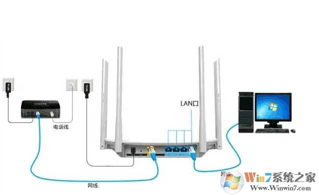 4、如果是電腦無線連接LAN口可以不用插。