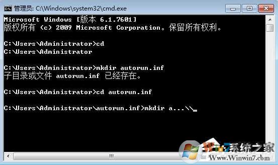 mkdir autorun.inf cd autorun.inf mkdir a...\\