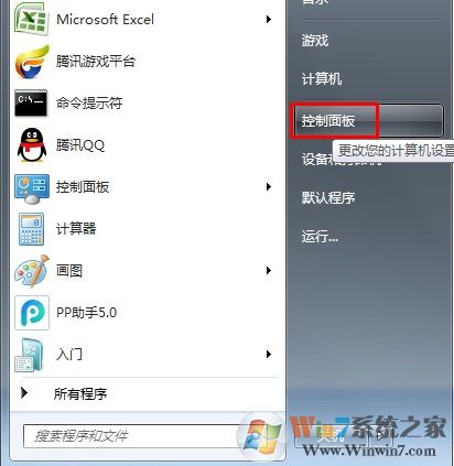 1、點(diǎn)擊開始菜單,打開控制面板,如下圖所示: