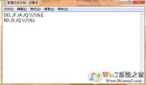 接著另存為“刪除文件.bat”(后綴一定要為“.bat”),接著將要刪除的文件或者目錄拖放到這個bat文件的圖標(biāo)上就可以刪除了;如下圖所示: