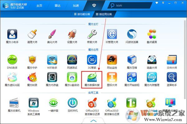1、在魔方電腦大師中,找到『魔方數(shù)據(jù)恢復(fù)』,然后打開該軟件。