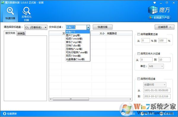 2、在魔方數(shù)據(jù)恢復(fù)中,可以選擇自己要恢復(fù)的文件類型,如果不確定文件類型,可以選擇所有文件。