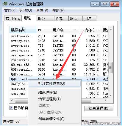 1、不管用什么軟件,還是win7系統(tǒng)的任務管理器,定位到teniodl.exe所在位置。