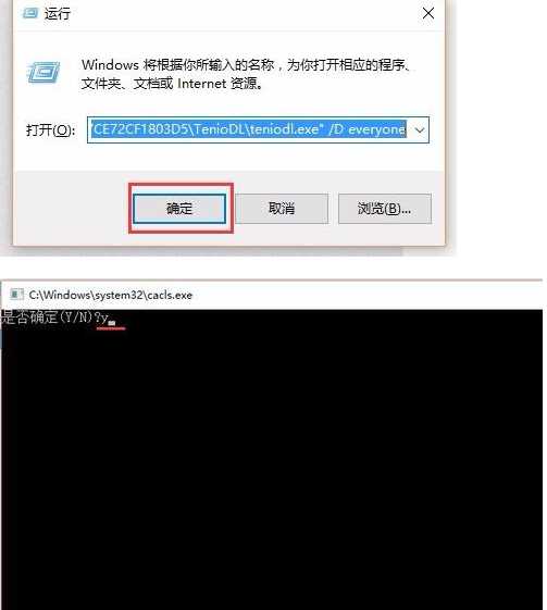 3、然后win+R運行下面的命令:cacls "路徑" /D everyone(把路徑兩個字改成你文件的路徑,我這里的路徑為C:\Users\用戶名\AppData\Roaming\Tencent\游戲名\F1192476628E294C4CE7CE72CF1803D5\TenioDL\teniodl.exe)