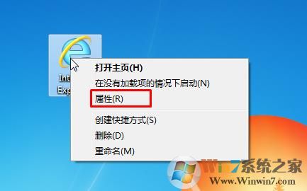 1、右鍵點(diǎn)擊桌面上的IE圖標(biāo),然后右鍵——屬性就可以打開internet選項(xiàng);