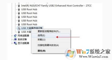 解決方法:在設備管理器中啟用USB大容量存儲設備,然后打開計算機即可找到U盤。