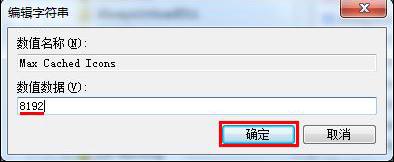 4、將“編輯字符串”窗口里的數(shù)值數(shù)據(jù)設置為“8192”,然后點擊“確定”按鈕保存修改,如下圖所示: