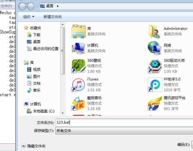 2、然后另存為“命名.bat”文件,名字自己取。