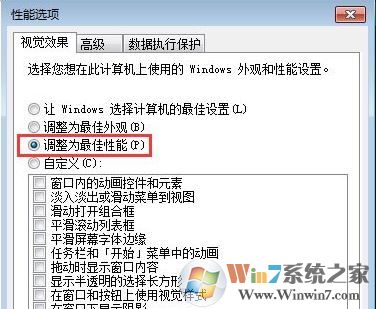 5、最后選擇“調(diào)整為最佳性能”選項,點擊“確定”按鈕即可,這時候電腦就比以前好多了。