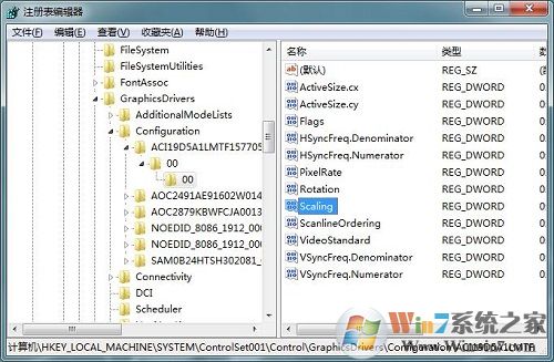 6、這時候,右邊就會出現很多注冊表文件,找到“Scaling”這個文件;
