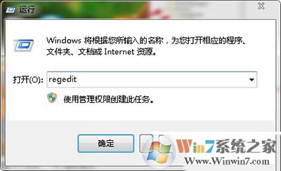 2、輸入regedit字符命令,點(diǎn)擊確定鍵打開注冊(cè)表編輯器;