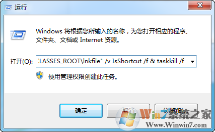 方法一:開始==運(yùn)行==輸入cmd /k reg delete "HKEY_CLASSES_ROOT\lnkfile" /v IsShortcut /f & taskkill /f /im explorer.exe & start explorer.exe 點(diǎn)擊確定