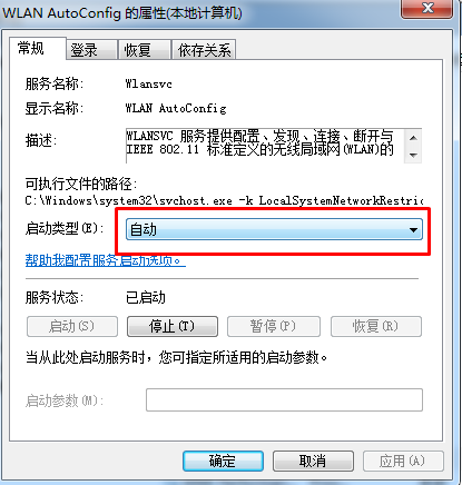 3、雙擊WLAN AutoConfig服務(wù),將啟動(dòng)類型更改為“自動(dòng)”,并點(diǎn)擊【啟動(dòng)】按鈕,最后點(diǎn)擊確定;