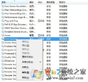 3、右鍵單擊print spooler,點擊重新啟動即可: