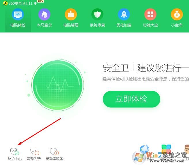 1、點(diǎn)擊360界面的防護(hù)中心,如下圖;