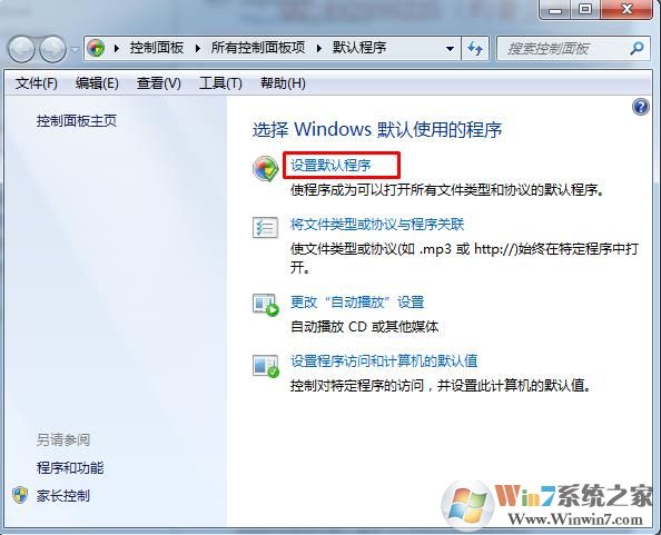 Win7下系統(tǒng)本身設(shè)置默認(rèn)瀏覽器步驟: