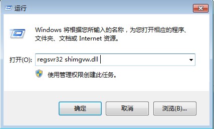 1、按WIN+R鍵或者開始菜單打開運行窗口,然后在運行對話框中輸入:regsvr32 shimgvw.dll 命令并回車;