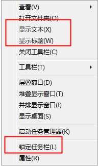 3、在 剛新建出來(lái)的“Quick Launch ”上單擊右鍵,把鎖定任務(wù)欄、顯示文本、和顯示標(biāo)題的勾全部去掉;