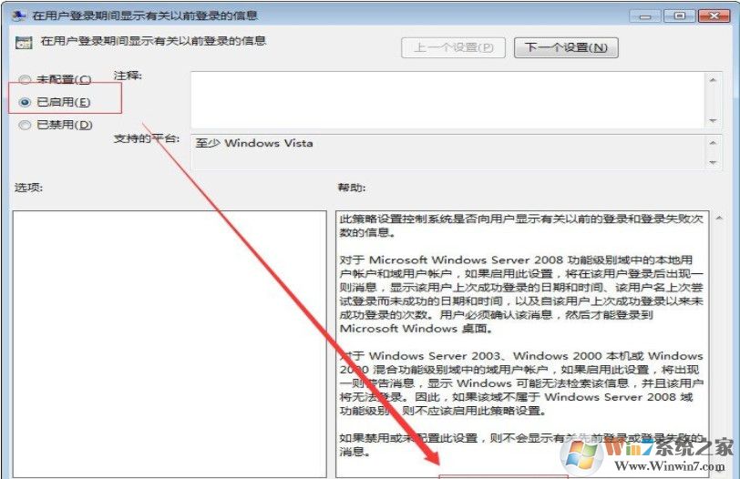 3、在打開(kāi)頁(yè)面中,請(qǐng)選擇【在用戶登陸期間顯示有關(guān)以前的登陸信息】,使用鼠標(biāo)左鍵雙擊即可;