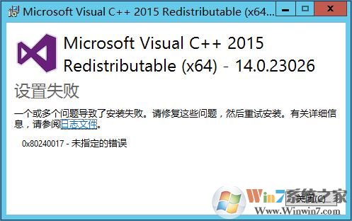 安裝VC++2015時(shí)提示安裝失敗,錯(cuò)誤代碼0x80240017 - 未指定的錯(cuò)誤,如下: