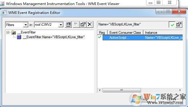 2.安裝后打開WMI event viewer,點擊左上角 register for events,彈出Connect to namespace框,填入“root\CIMV2”,確定。