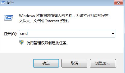 2.在運行程序窗口中,輸入cmd,點擊“確定”。