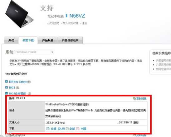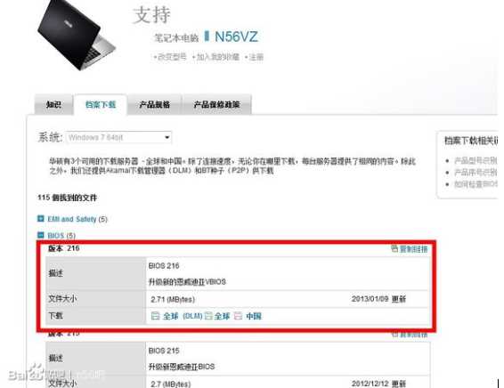 2、首先下載BIOS源文件。華碩官網(wǎng)最新版是216版。