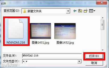 7、首先會(huì)彈出警告的窗口,點(diǎn)確定,然后在彈出窗口找到你的BIOS數(shù)據(jù)文件,打開(kāi)。