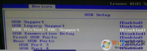 USB Setup 中的USB Virtual KBC Support默認(rèn)是關(guān)閉的,把USB Virtual KBC Support設(shè)置為 Enabled可以解決問題。