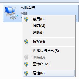 3、右鍵點(diǎn)擊本地連接然后選擇屬性;