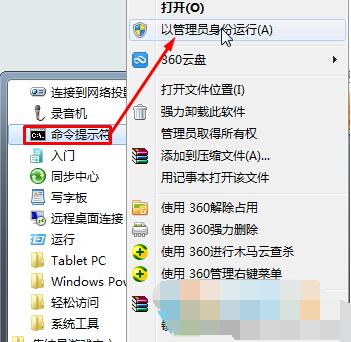2、找到“命令提示符”,單擊右鍵選擇“以管理員身份運(yùn)行”;