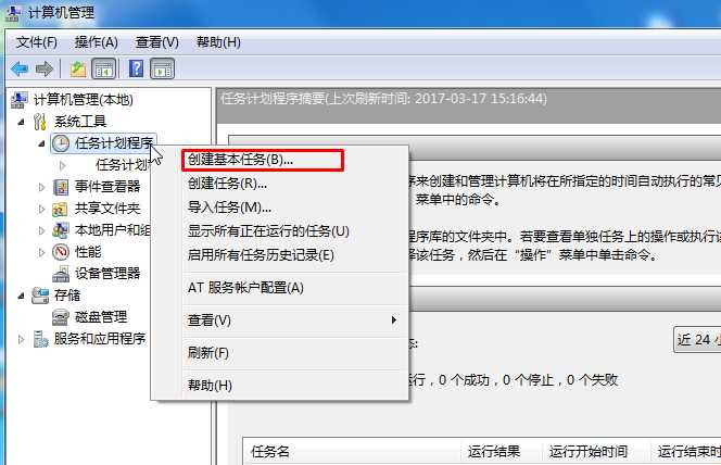 3、然后右鍵點(diǎn)擊創(chuàng)建基本任務(wù);