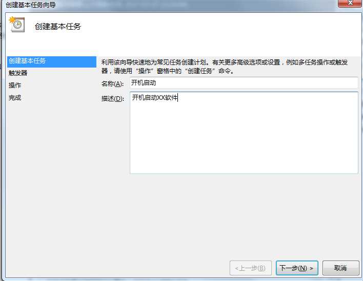 4、創(chuàng)建任務(wù)名稱,開機(jī)啟動;