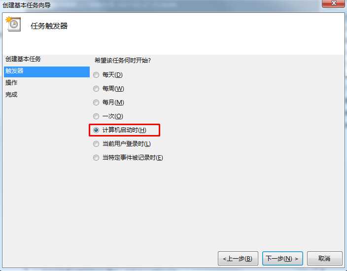 5、觸發(fā)器設(shè)置為計算機(jī)啟動時;