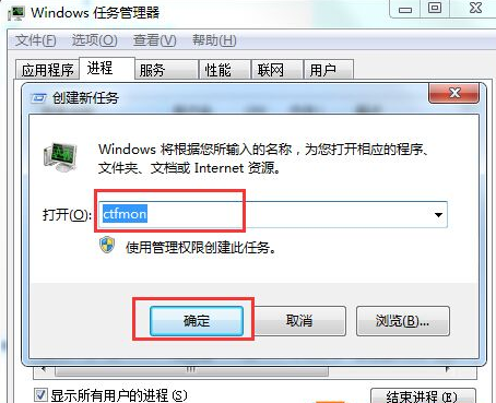 3、然后點擊任務(wù)欄菜單上的 “文件”——“新建任務(wù)”,在彈出的輸入框中輸入ctfmon 并回車