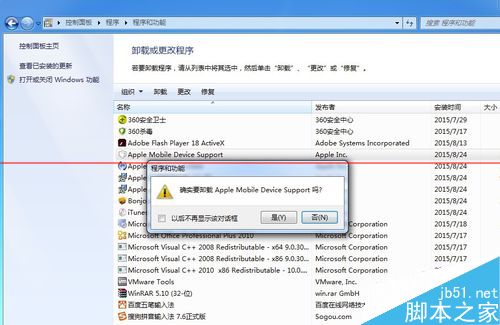4、接著再點(diǎn)擊“是”按鈕,先卸載 Apple Mobile Device 服務(wù),如圖所示