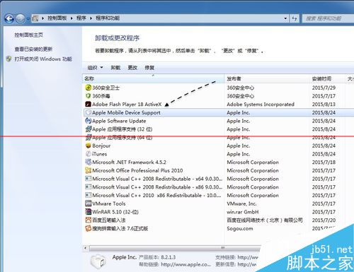 3、隨后在應(yīng)用程序列表中,找到 Apple Mobile Device 一欄,雙擊即可啟動(dòng)卸載程序。