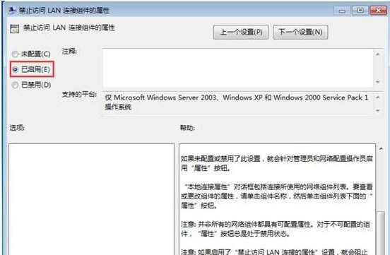 5、修改好上面一項后,我們還需要設(shè)置一項,找到“禁止訪問LAN連接組件的屬性”,同樣雙擊打開;