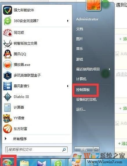 1、首先們從開始菜單進入控制面板,如下圖就是了;