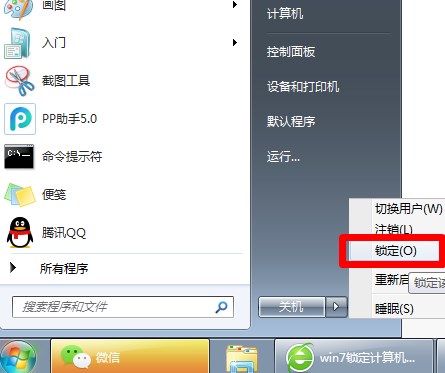 點(diǎn)擊開始菜單,然后切換到“關(guān)機(jī)”旁邊的箭頭,那么就會(huì)有鎖定選項(xiàng)了,移動(dòng)到那里后,按O鍵也是可以的。