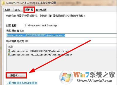 5、打開(kāi)界面后,選擇“所有者”選項(xiàng)卡,點(diǎn)擊“編輯”,如圖所示: