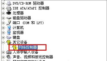 1、 打開設(shè)備管理器,找到如下標(biāo)識(shí)黃色嘆號(hào)設(shè)備,以下圖舉例說(shuō)明,在“網(wǎng)絡(luò)控制器”上點(diǎn)擊鼠標(biāo)“右鍵”選擇“屬性”