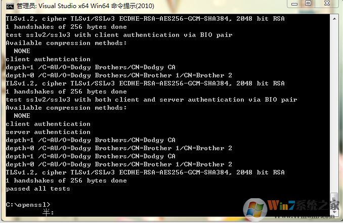 15、然后 輸入命令: nmake -f ms\nt.mak test 檢查上一步編譯是否成功,如果成功則最后顯示“passed all tests”字樣,如圖: