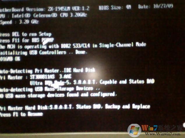 提示:本主板插有U盤,而第一啟動不是硬盤,這種情況也很容易出現(xiàn)開機(jī)按F1的現(xiàn)象。