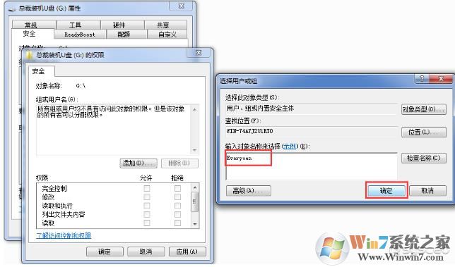 4、補(bǔ)充一點(diǎn) 如果U盤(pán)沒(méi)有以上 Everyoen 的用戶名的話需要新建一個(gè) ,然后把其余的用戶組刪除,只能保留 Everyoen 用戶組